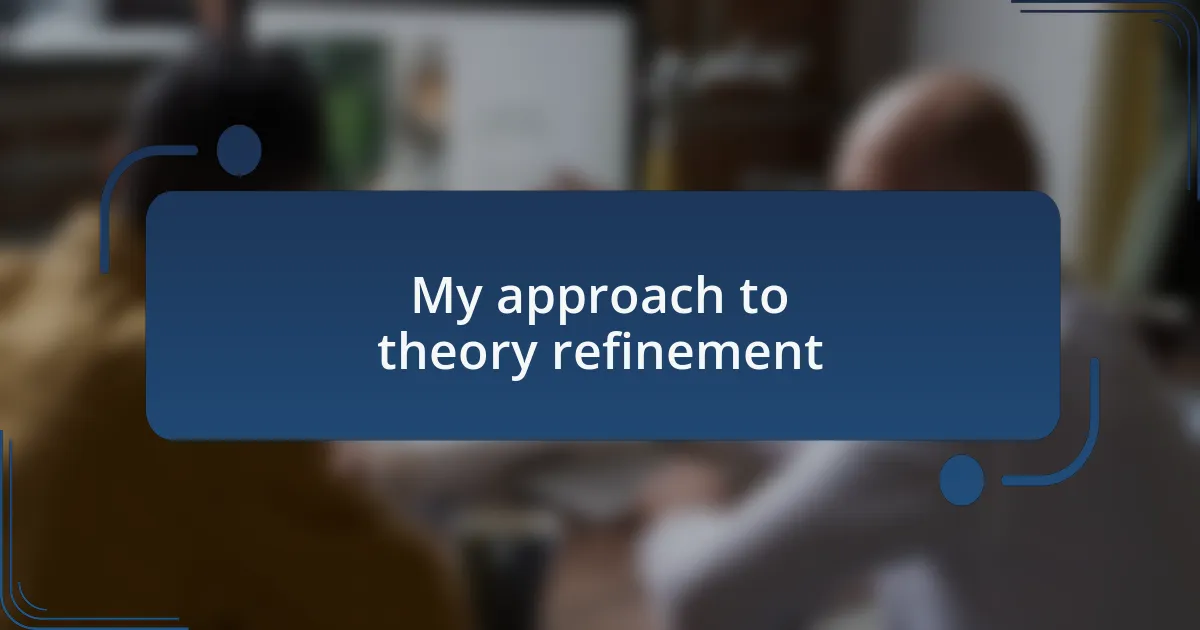 As I dive into my approach to theory refinement, I often start with a deep personal reflection on what I’ve observed. I recall a scenario where I facilitated a small group discussion on effective communication. Listening to participants share their thoughts made me realize how their experiences challenged my initial assumptions. Have you ever had a moment where your perspective shifted just by hearing someone else’s story?