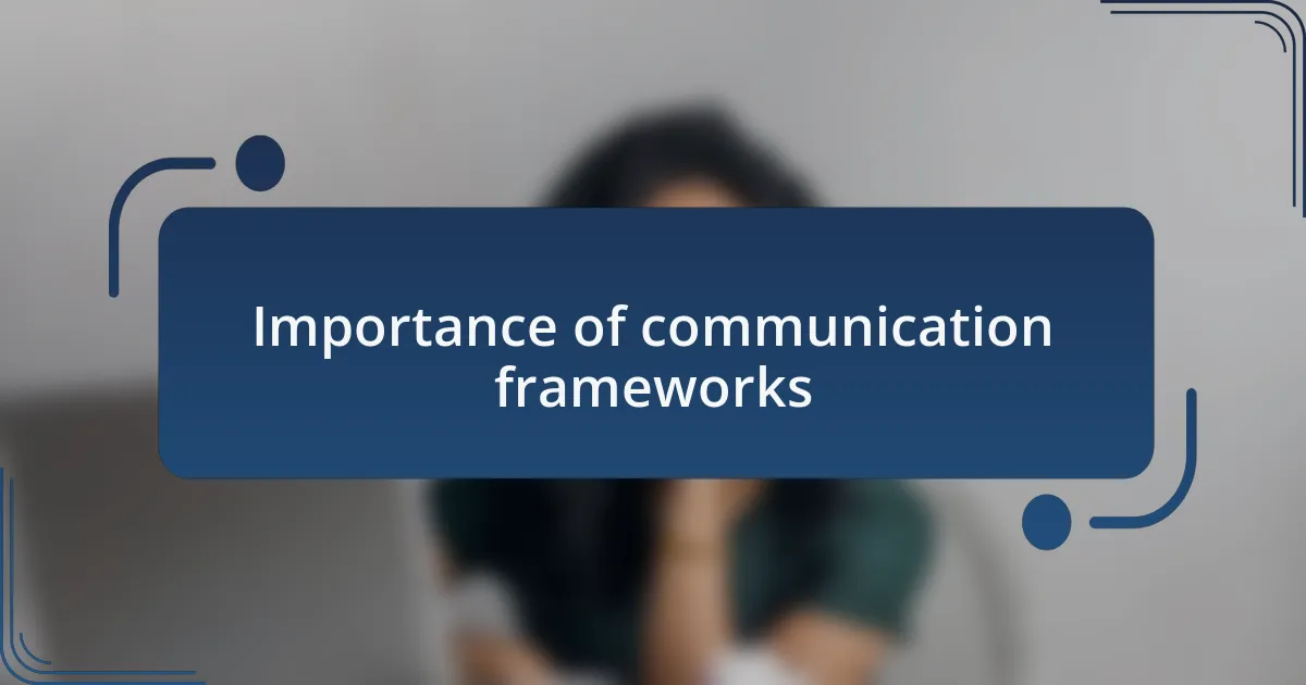 Effective communication frameworks are paramount in any organization, guiding how information flows and ideas are shared. I vividly recall when my team adopted a structured communication plan; it felt like a weight had been lifted. Everyone knew their roles in the conversation, which fostered an environment of trust and respect—did you ever notice how clarity can diminish misunderstandings?