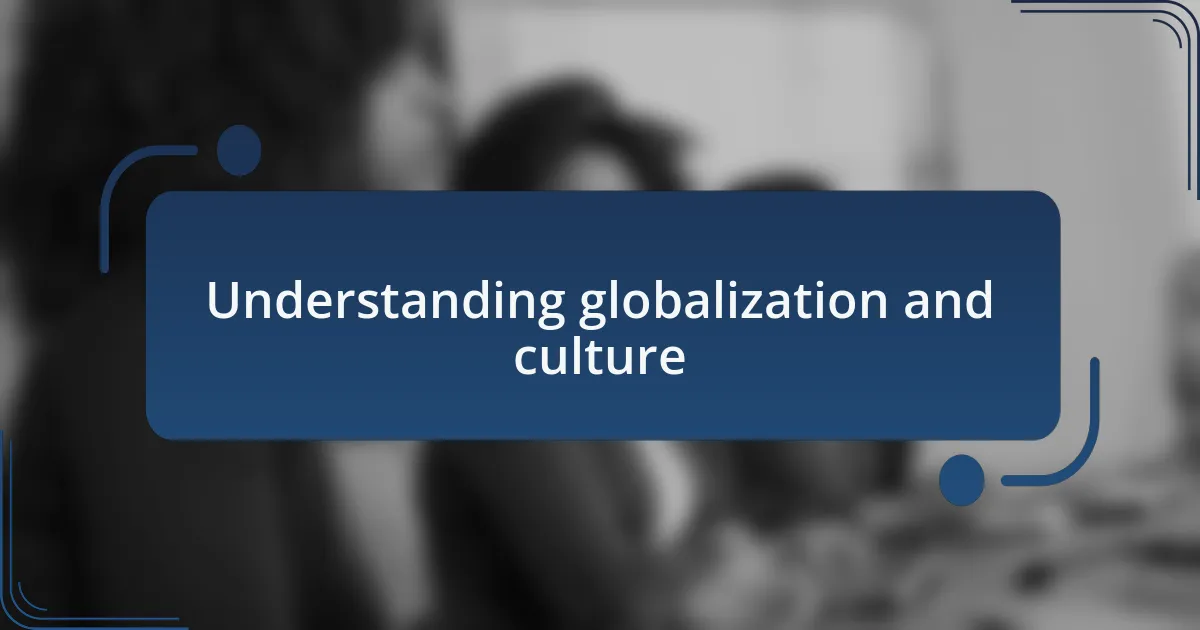 Globalization and culture are deeply intertwined, shaping how we view and interact with the world. I often reflect on my travels and how encountering diverse cultures can broaden our perspectives. Have you ever visited a place where the local customs challenged your own beliefs? It’s in these moments that we realize how interconnected we truly are.