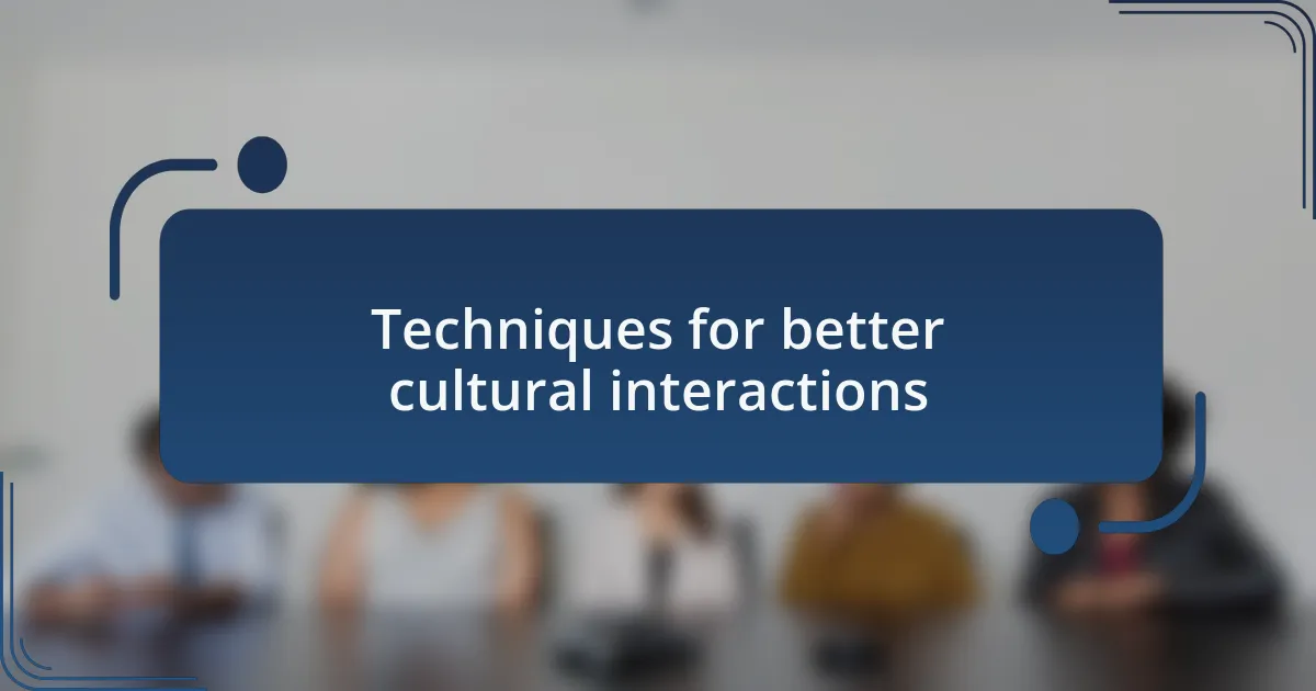 Techniques for better cultural interactions